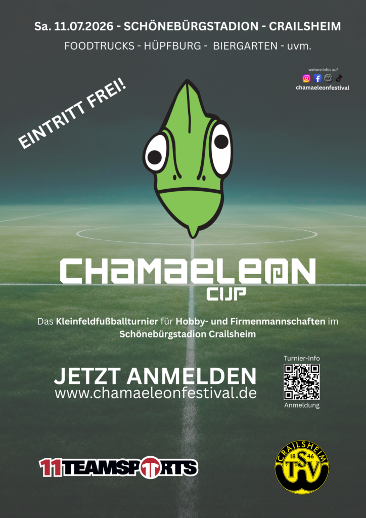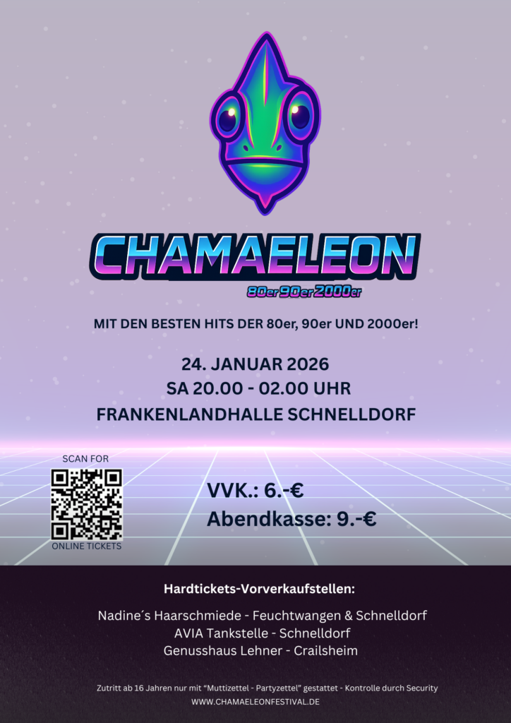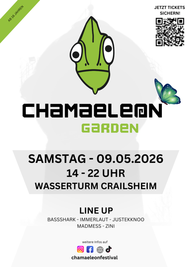 CHAMAELEON FESTIVAL TageStundenMinutenSekunden 1. – 3. August 2025 CASHLESS RÜCKERSTATTUNG 2025 – Hier klicken IMPRESSIONEN Auszüge aus unserem Aftermovie 2.500 Besucher 2 Stages 20 DJs Cashless System WeezPay widget PARTNER Fragen zum Festival? Dann melde dich hier! E-Mail